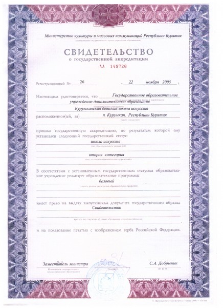 Свидетельство о государственной аккредитации